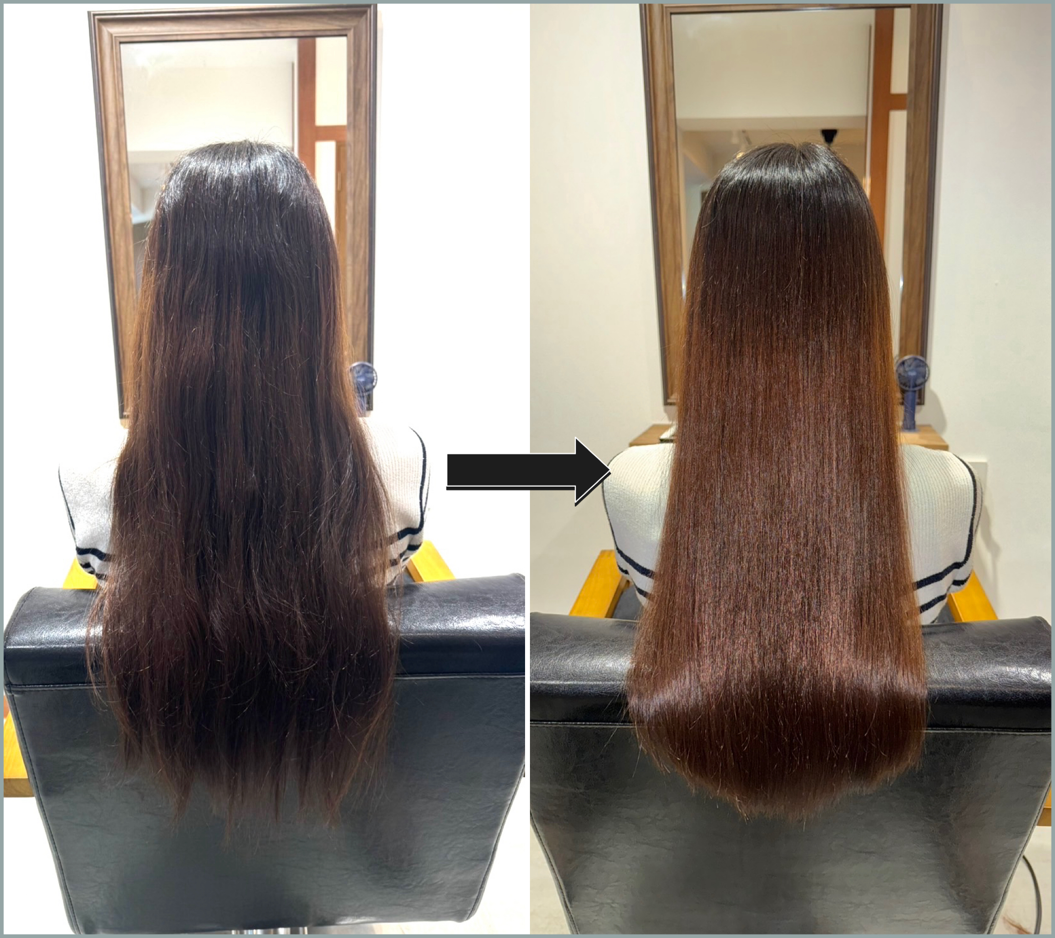 根元のうねりと毛先のパサつきに悩む髪が、艶やかな美髪に変身した事例をご紹介します。